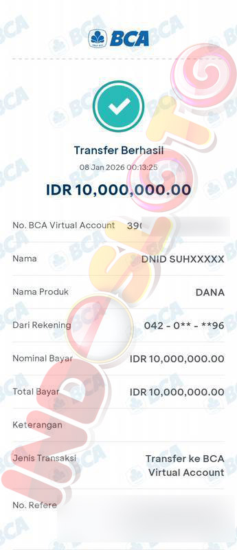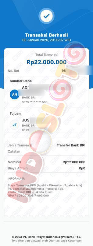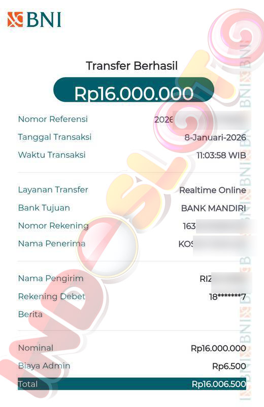 BUKTI TRANSFER JP MEMBER INDOSLOTO
