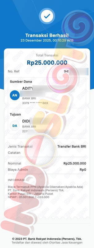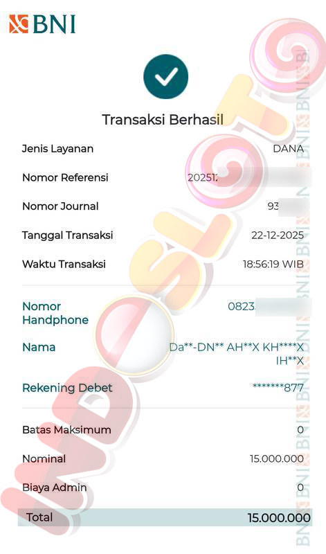 BUKTI TRANSFER JP MEMBER INDOSLOTO