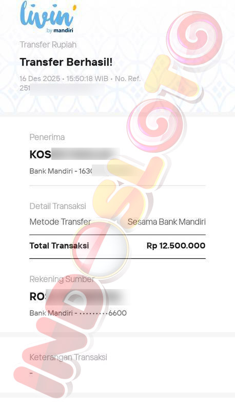 BUKTI TRANSFER JP MEMBER INDOSLOTO