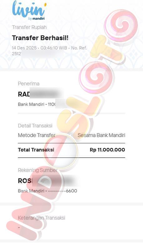 BUKTI TRANSFER JP MEMBER INDOSLOTO