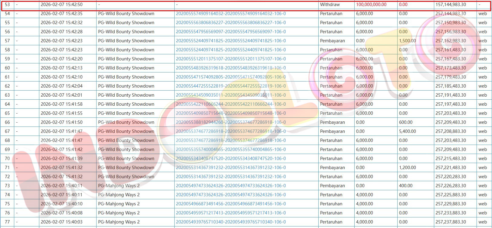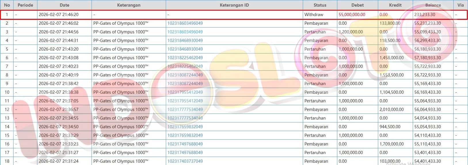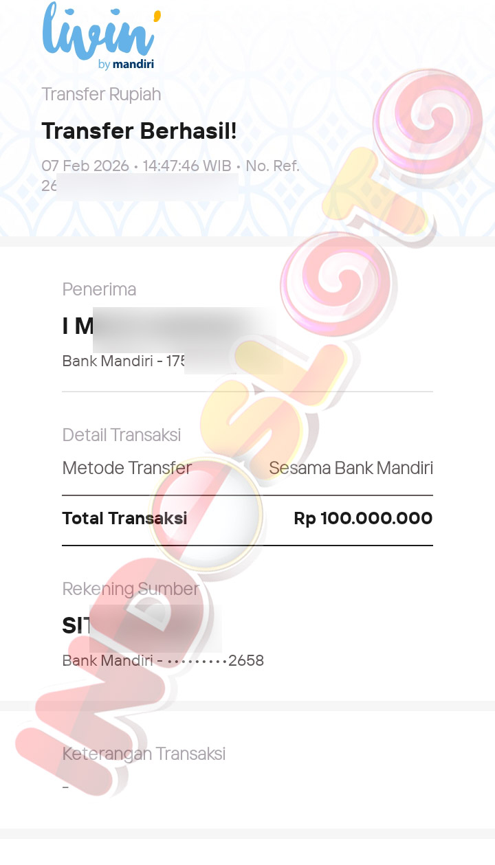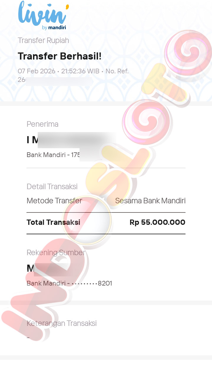 BUKTI TRANSFER JP MEMBER INDOSLOTO