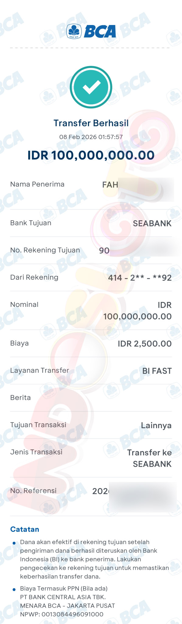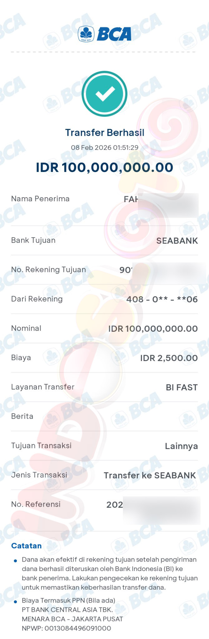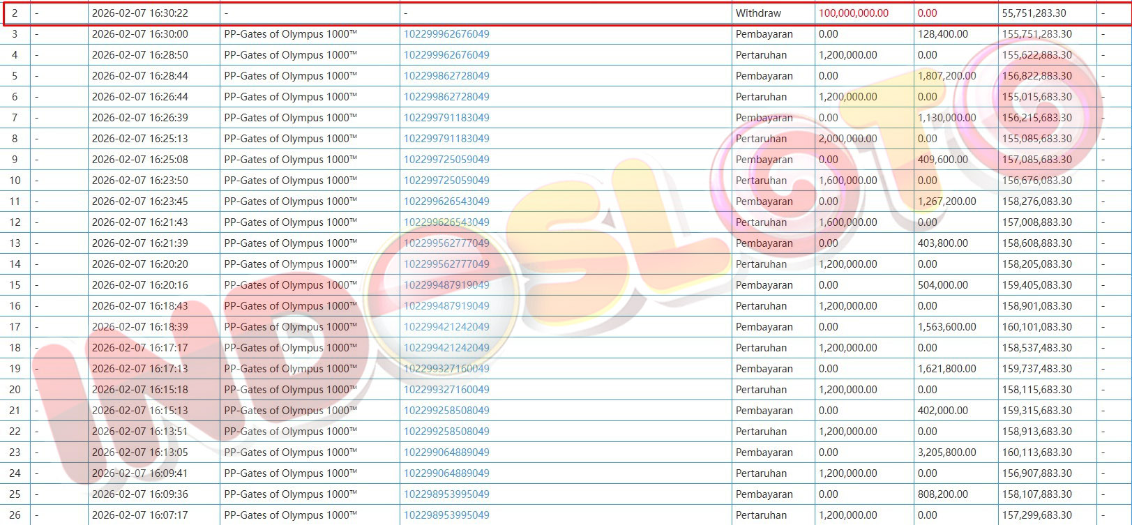 BUKTI TRANSFER JP MEMBER INDOSLOTO